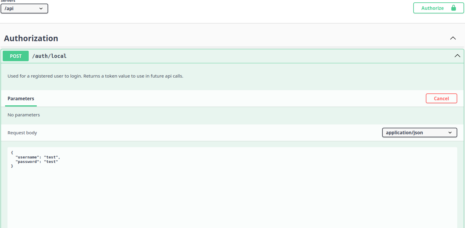 - Copy your token and use the Authorize button in Swagger. Paste the token into the prompt.